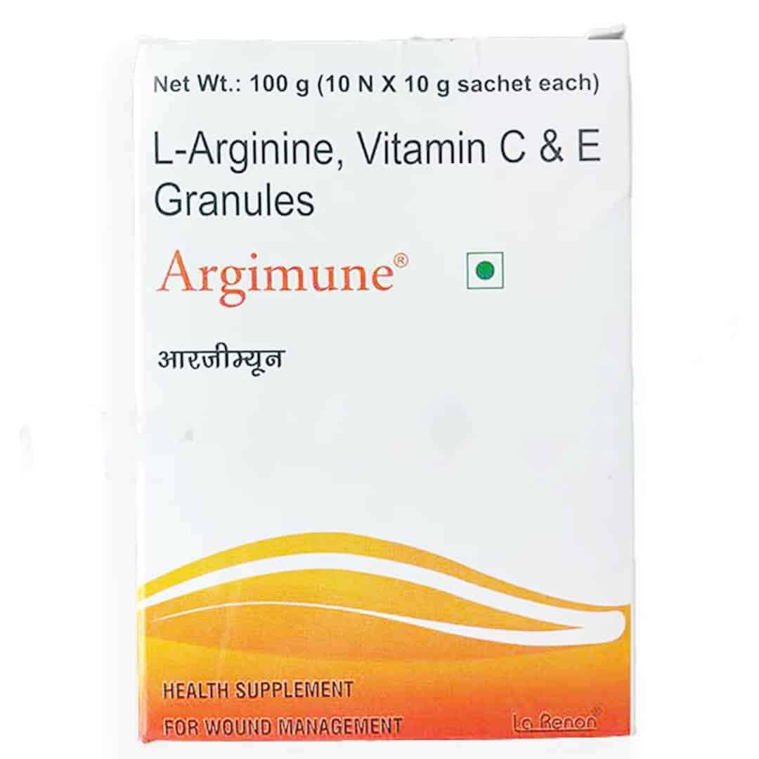 Argimune 10gm sachet, arginine helps increase the blood flow in the wound area and boost the immune system to fight against bacteria. Vitamins C and E neutralize the free radicals and enhance the healing process.