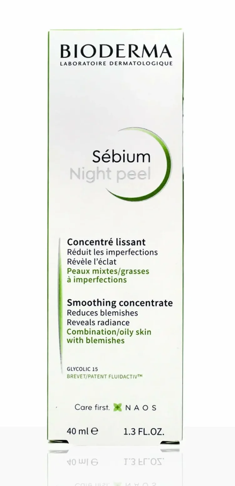 Bioderma Sebium Night Peel 40ml Smoothing Concentrate is an overnight treatment specifically designed for blemish-prone skin. It offers the efficacy of a gentle peel that can be used at home. The key ingredient in this product is 15% glycolic acid, which provides the peeling action. Glycolic acid is an alpha-hydroxy acid (AHA) that is naturally found in fruit and is frequently used by dermatologists for its high efficacy in exfoliating the skin. The Bioderma Sebium Night Peel helps to stimulate cell renewal, resorb blemishes, and improve the radiance of the skin. It is suitable for a combination of oily skin types.