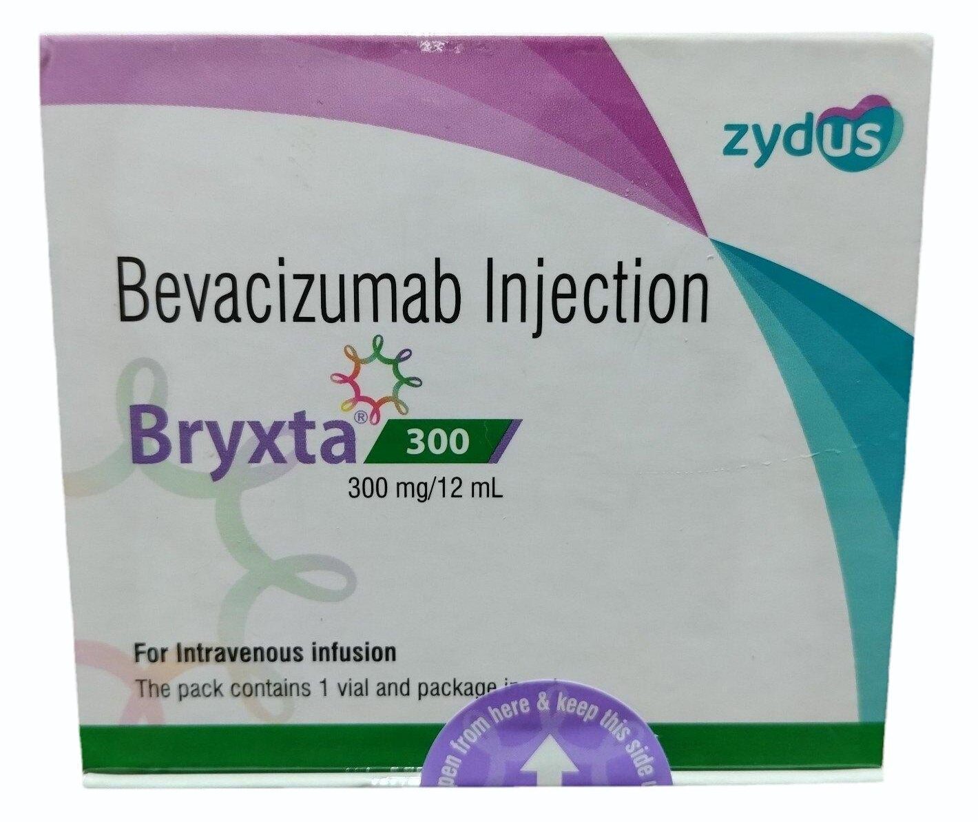 Bryxta 300mg Injection is a recombinant humanized monoclonal antibody that works as a targeted therapy in the treatment of various advanced cancers. It produces its action by selectively binding to the protein called vascular endothelial growth factor A (VEGF-A), present in the lining of blood and lymph vessels in the body. It interrupts the interaction of VEGF-A with its receptors. This further inhibits the formation of blood vessels that supply oxygen and nutrients to the tumor. As a result, it slows down the rate of progression of cancer.