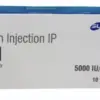 Caprin 25000IU Injection contains an active component such as Heparin. It is a widely used anticoagulant medication, meaning it prevents the formation of blood clots. It is commonly prescribed in various medical situations to reduce the risk of clotting, especially in patients who are at higher risk for developing blood clots. Caprin 25000IU Injection is commonly used in hospitals to prevent and treat deep vein thrombosis (DVT), pulmonary embolism (PE), and other conditions where the formation of blood clots is a concern. It is also used during certain surgical procedures and in dialysis to prevent clotting in the extracorporeal circuit. The effect varies among individuals, so its administration requires careful monitoring of blood clotting parameters, usually through the activated partial thromboplastin time (aPTT) test. The dosage may need to be adjusted to maintain therapeutic levels. In case of excessive bleeding or an overdose of Caprin 25000IU Injection, its effects can be reversed using protamine sulfate, an antidote for this medication.