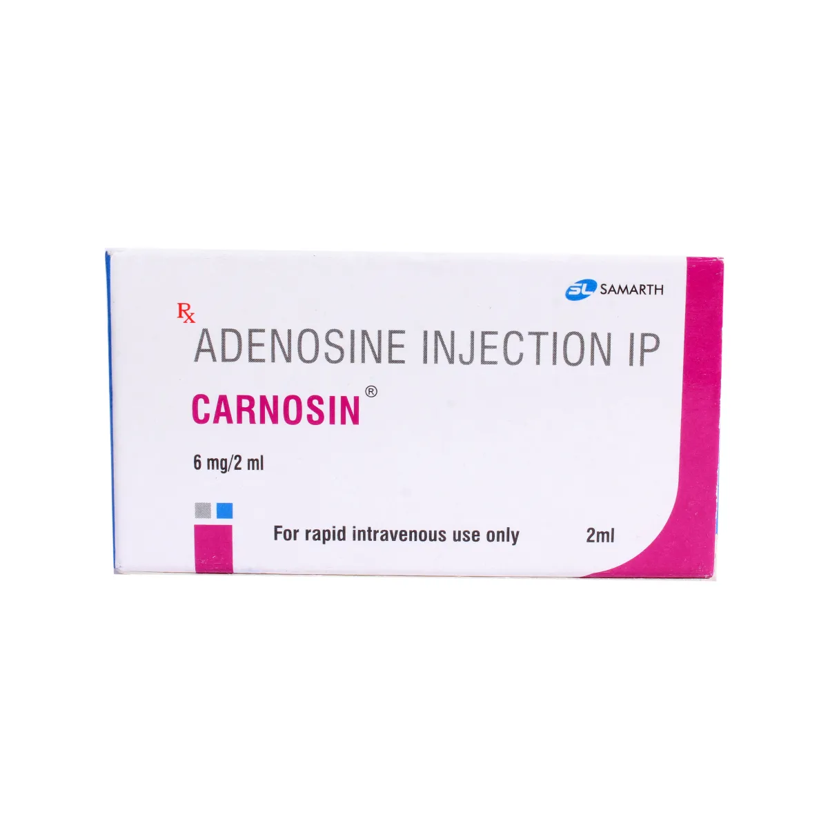 Carnosin 6mg Injection contains an active component as Adenosine. This medication is commonly used to diagnose supraventricular tachycardia (SVT). SVT is a rapid heart rhythm disorder that originates above the ventricles in the heart. It may be administered during electrophysiology (a type of diagnostic test for the heart) studies to induce and assess abnormal heart rhythms. It helps identify arrhythmias’ specific mechanisms and locations, providing valuable information for planning subsequent treatments. Carnosine 6mg Injection is used in stress tests, such as myocardial perfusion imaging or nuclear stress tests, to evaluate blood flow to the heart muscle.