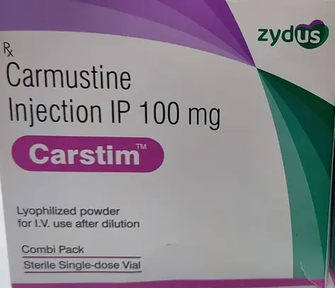 Carstim 100mg Injection belongs to the group of medications known as Antineoplastic. It contains active constituent carmustine. It is used as palliative therapy (preventing and relieving the suffering of patients) in certain types of cancers, like multiple myeloma, Hodgkin’s disease, non-Hodgkin’s lymphomas, and brain tumors (glioblastoma, medulloblastoma, astrocytoma, and metastatic brain tumors). Cancer is a disorder in which cells multiply in an uncontrolled and abnormal manner. This medicine is given alone or in combination with other medicines for cancer treatment.