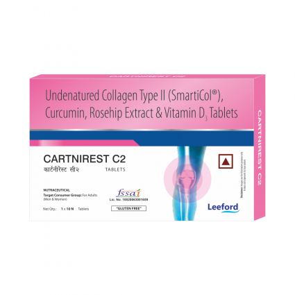 Cartnirest C2 Tablet offers multiple benefits for joint health and overall well-being. Undenatured collagen type 2 supports joint flexibility and mobility, while curcuma longa (turmeric) provides anti-inflammatory properties, reducing joint pain and stiffness. Rosehip extract contributes to cartilage health and joint function. Vitamin D3 helps in calcium absorption, supporting bone density and joint integrity. This blend of ingredients provides comprehensive support for joint health, reducing discomfort and promoting overall mobility and vitality.