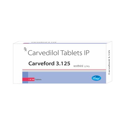 Carveford 3.125mg Tablet is a medicine used to treat high blood pressure, heart-related chest pain (angina), and heart failure. It works by relaxing the blood vessels, so blood can flow more easily to the heart. Lowering blood pressure also helps prevent future heart attacks and stroke.