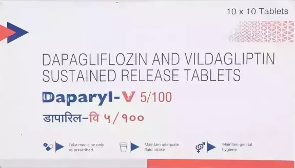 Daparyl V 5/100mg Tablet is a prescription medicine used for the effective management of type 2 diabetes mellitus. It combines two active ingredients that help regulate blood sugar levels by reducing glucose production in the liver, improving insulin sensitivity, and enhancing glucose utilization in the body. This combination therapy is designed for patients whose blood sugar is not adequately controlled with diet, exercise, or single medicines alone.