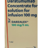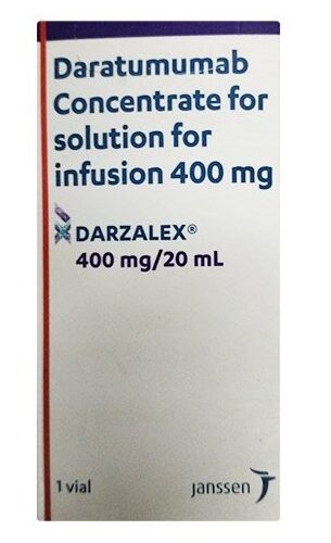 Darzalex 400mg Injection is a targeted therapy for cancer containing the active ingredient Daratumumab, which belongs to the group of medicine called monoclonal antibodies. Monoclonal antibodies are proteins that recognize and attach to the specific target, killing the cancer cells. It is used to treat a type of cancer called multiple myeloma (bone marrow cancer) in adults 18 years or older. Report to your doctor if you have ever had a hepatitis B infection; this medicine may cause the hepatitis B virus to become active again. This medicine can decrease platelets (helps in blood clotting) and white blood cell counts (helps fight infections).