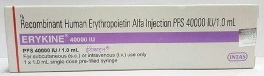 Erykine 40000IU injection works by stimulating the bone marrow to produce more red blood cells. Red blood cells carry oxygen to the body’s tissues, so increasing the number of red blood cells can help to treat anemia.