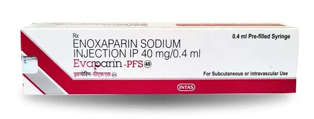 Evaparin PFS 40mg Injection is an anticoagulant drug in the low molecular weight heparin (LMWH) category, containing the active ingredient Enoxaparin. It is used to treat severe blood clots. This drug also prevents the occurrence of deep vein thrombosis in abdominal surgery, hip replacement surgery, knee replacement surgery, and in people with severe movement restrictions. This injection prevents further heart complications in patients with unstable angina and non-Q wave myocardial infarction.