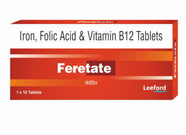 Feretate Tablet is a combination of two medicines: Sodium Feredetate and Folic Acid. Sodium Feredetate works by replenishing the iron stores in your body. Iron is vital for formation of new red blood cells and hemoglobin, a substance that gives these cells the ability to transport oxygen. Folic Acid is a form of vitamin B. It plays a vital role in the formation of red blood cells, which carry oxygen throughout the body. It also contains vitamin B12, that restores its level in the body thereby helping in treating certain anemias and nerve problems.