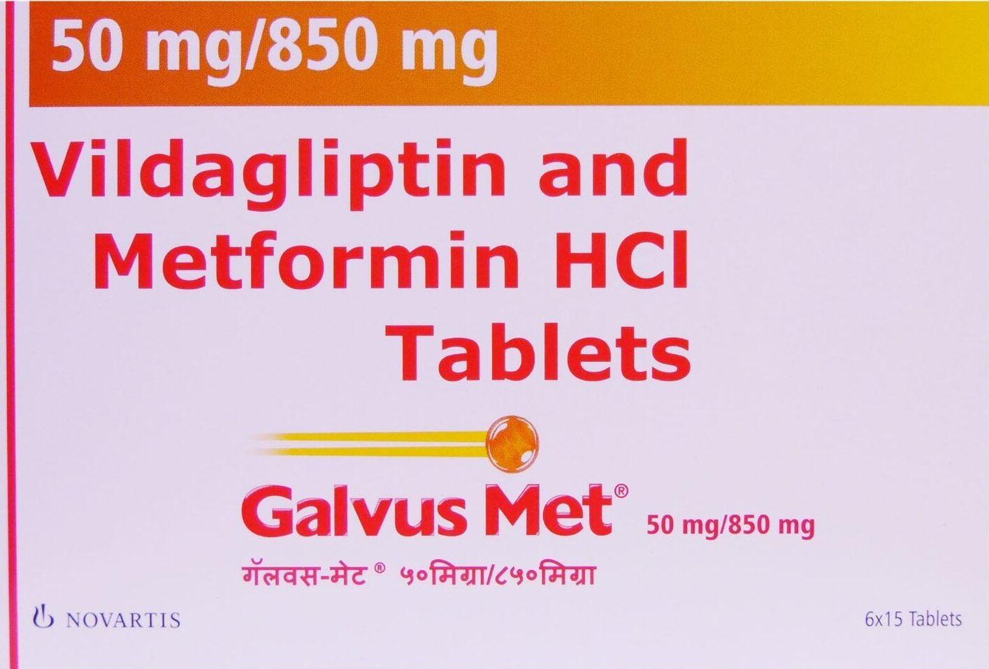 Galvus Met 50/850mg Tablet is an anti-diabetic medicine used to manage type 2 diabetes mellitus. It combines two active ingredients, Vildagliptin (50 mg) and Metformin (850 mg), which work together to control high blood sugar, improve insulin function, and reduce glucose production in the liver.