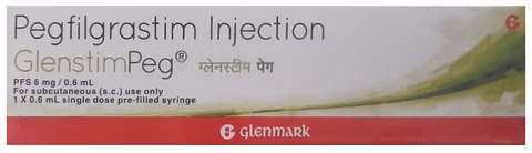 Glenstim PEG 6mg Injection consists of the active ingredient Peglylated granulocyte colony-stimulating factor. This is synthesized from the bacteria E.coli. It belongs to a category of proteins called cytokines and is similar to the natural protein produced by the body. It is a leukocyte growth factor indicated to reduce infections in patients receiving anti-cancer drugs with bone marrow suppressive properties. By reducing the risk of infections, Glenstim 6mg Injection can help cancer patients receive their full dose of chemotherapy on schedule, improving treatment outcomes.