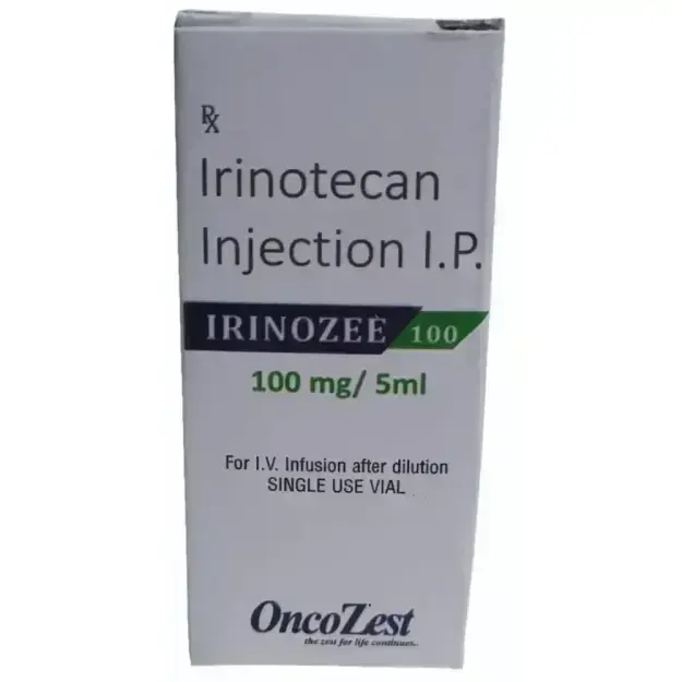 Myelosuppression (bone marrow suppression leading to low levels of RBC, WBC, and platelets in the blood) and diarrhea are this medication’s most common adverse effects. Other common side effects of Irinozee 100mg Injection are nausea, vomiting, abdominal pain, constipation, anemia, pain, fatigue, fever, infections including sepsis, abnormal bilirubin levels, hair loss, and weight loss. Inform your doctor if these side effects disturb or persist in you. Notify your doctor if you have chronic inflammatory bowel disease or bowel obstruction or if you took any live vaccines.