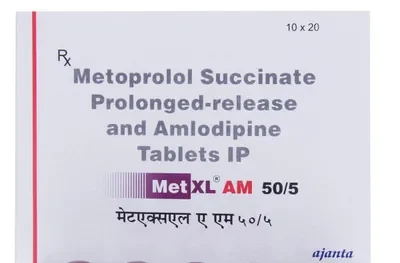 Met XL AM 50/5mg Tablet contains two medicines, both of which help to control high blood pressure and heart rate. It is also used for heart-related chest pain (angina), abnormal heart rhythms and chronic (long-term) heart failure.