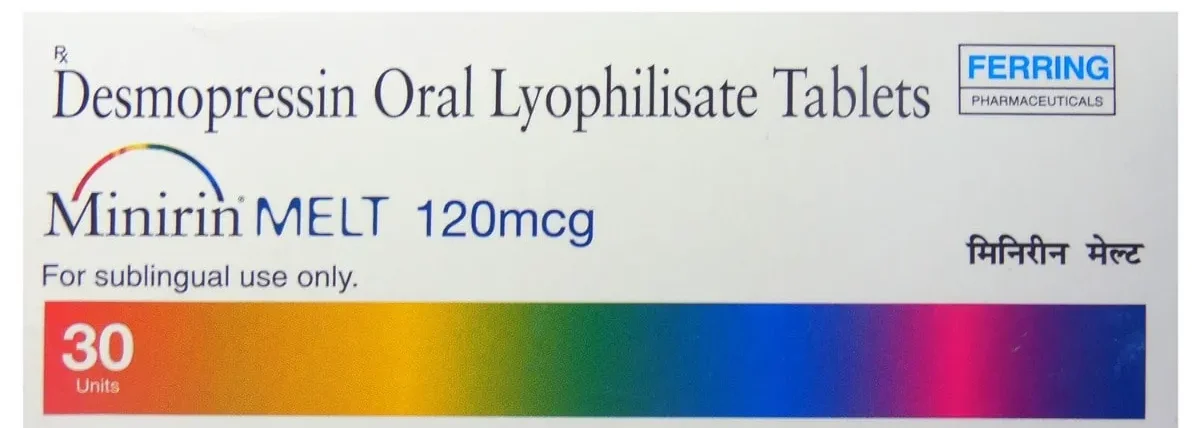 Minirin Melt MD 120mcg Tablet contains an active component as Desmopressin. It also known as DDAVP , is a synthetic form of the hormone vasopressin. Vasopressin is naturally produced in the body by the hypothalamus and released from the pituitary gland. It plays a crucial role in regulating water balance, blood pressure, and urine production.