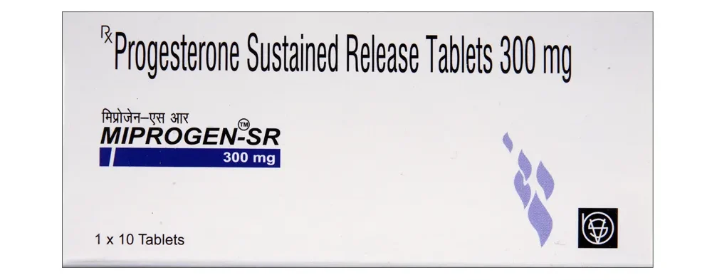 The therapeutic effect of Miprogen SR 300mg Capsule is to regulate and support various reproductive processes in the body, including the menstrual cycle, fertility treatments, hormone replacement therapy, and pregnancy maintenance. It helps prepare the uterus for potential pregnancy, maintains the uterine lining, prevents contractions that could lead to miscarriage, and contributes to overall hormonal balance. It can also be used in contraception to inhibit ovulation, thicken cervical mucus, and create an unfavorable environment for sperm, thus preventing pregnancy.