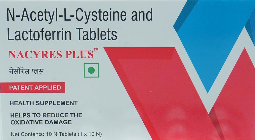 Nacyres Plus Tablet is a medication that contains two active ingredients N-Acetyl-L-Cysteine + Lactoferrin. It is used as a supplement to help address conditions caused by abnormal or thickened mucus secretions. Thickened mucus can be problematic in various respiratory conditions, such as chronic bronchitis, cystic fibrosis, or chronic obstructive pulmonary disease (COPD). It is mainly indicated as adjuvant therapy, which refers to a treatment used in addition to the primary therapy to enhance its effectiveness for specific symptoms or conditions.