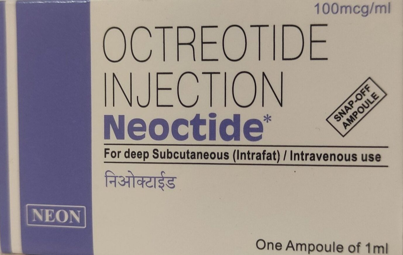 Neoctide 100mcg injection acetate, a cyclic octapeptide agent, inhibits growth hormone, glucagon, and insulin more effectively than the natural hormone somatostatin. The drug also reduces growth hormone and IGF-I (somatomedin C) in acromegaly, inhibits gallbladder contractions, reduces bile secretion, and suppresses thyroid stimulating hormone (TSH) secretion.