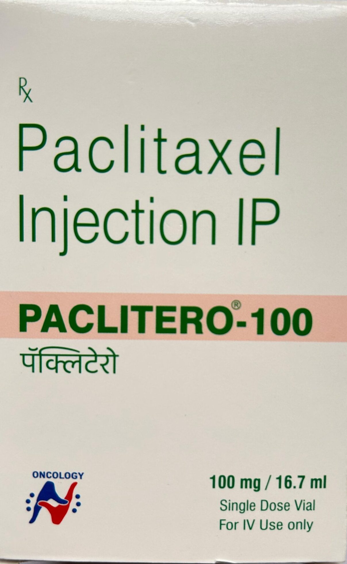 Paclitero 100mg Injection is an anticancer medicine. It treats breast cancer, non-small cell lung cancer, ovarian cancer, and AIDS (Acquired Immuno-Deficiency Syndrome). Cancer is a condition in which cells are dividing and growing fast and in an uncontrolled manner. This Injection may be given alone or in combination with other anticancer medicines. It should not be used for severe liver problems, uncontrolled infection, and low white blood cell or platelet count.