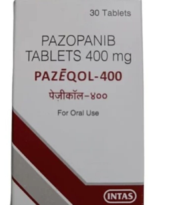 Pazeqol 400mg tablet is a biological agent that acts as targeted drug therapy in cancer treatment. It is an anticancer medication that belongs to the category of tyrosine kinase inhibitors. It interferes with the growth of blood vessels inside the cancer cells by acting against a protein called Vascular Endothelial Growth Factors (VEGF) to shrink cancer cells, ultimately stopping their growth and multiplication.