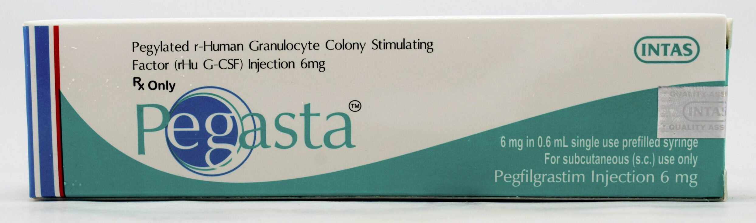 Pegasta 6mg Injection contains the active ingredient Pegfilgrastim. It belongs to the class granulocyte colony stimulated factor approved by FDA to decrease the risk of developing febrile neutropenia and the duration of neutropenia when receiving bonemarrow suppressive chemotherapy drugs.
