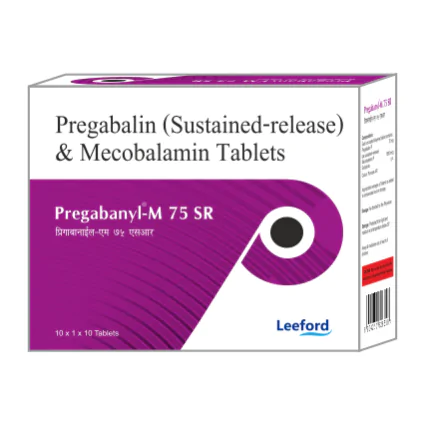 Pregabanyl-M 75 SR Tablet is a combination of two medicines: Methylcobalamin and Pregabalin. Methylcobalamin is a form of vitamin B which helps in the production of myelin, a substance that protects nerve fibers and rejuvenates damaged nerve cells. Pregabalin is an alpha 2 delta ligand which decreases the pain by modulating calcium channel activity of the nerve cells. Together, they relieve neuropathic pain (pain from damaged nerves).