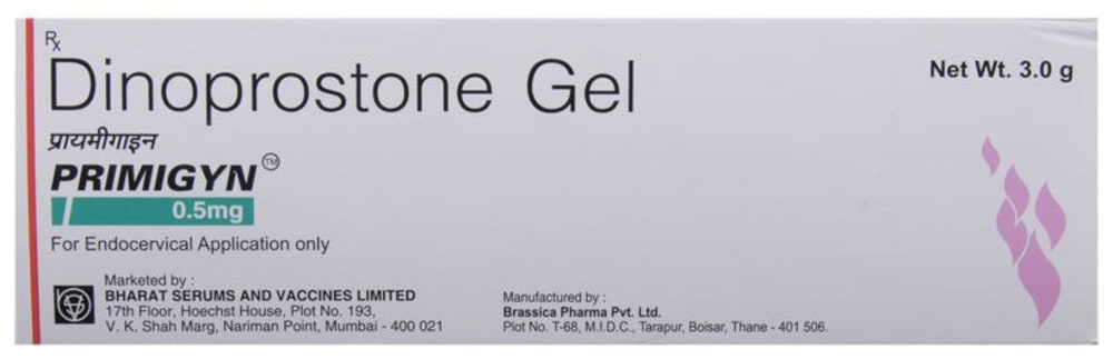 Primigyn 0.5mg Gel is a uterotonic medication containing the active ingredient Dinoprostone. This medication is used to induce labor in pregnant women. It facilitates cervical ripening and manages certain pregnancy-related complications. It is a synthetic form of prostaglandin E2, a hormone that influences uterine contractions and cervical changes.