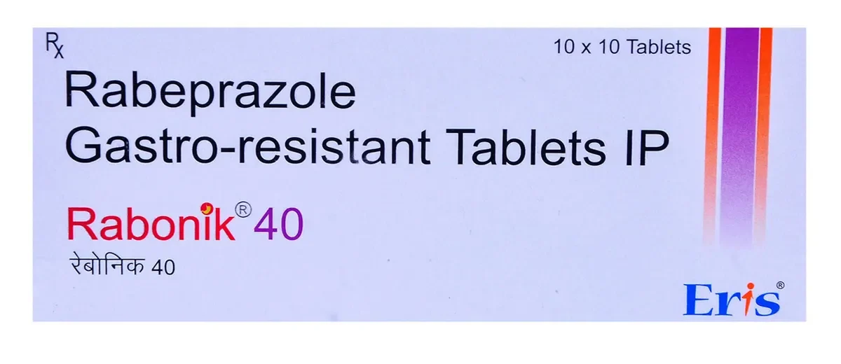 Rabonik 40 Tablet is a medicine that reduces the amount of acid produced in your stomach. It is used in the treatment of acid-related diseases of the stomach and intestine such as acid reflux, peptic ulcer disease, and Zollinger-Ellison syndrome. It provides relief from symptoms and promotes healing.