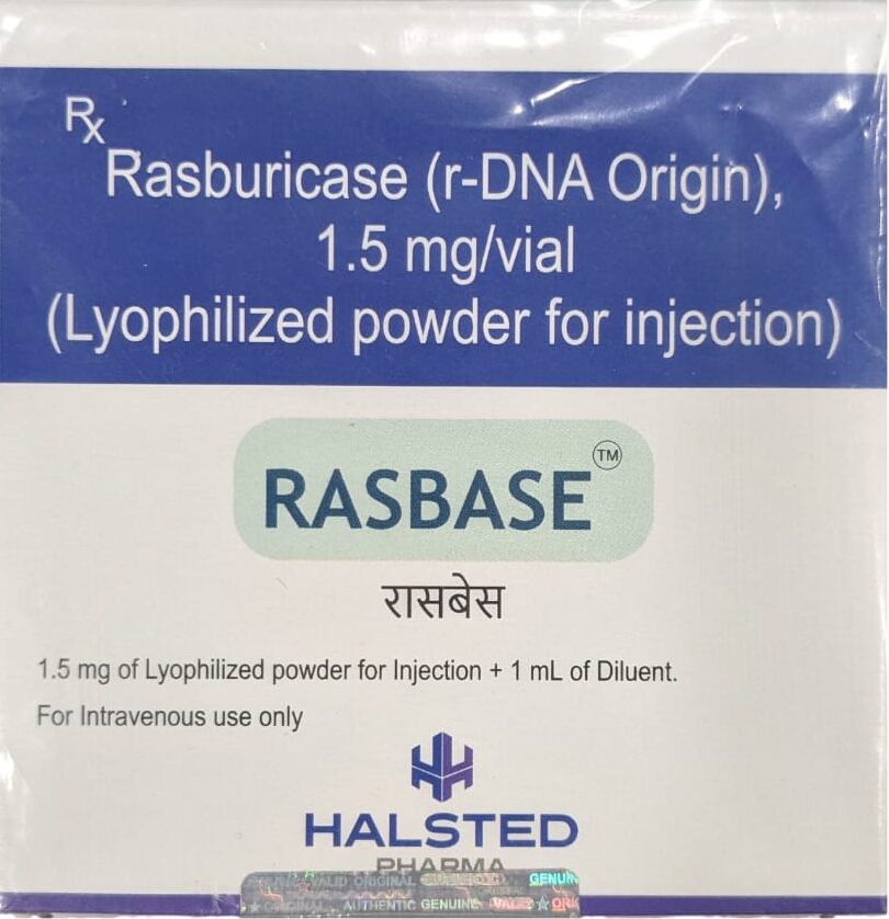 Rasbase 1.5mg Injection is an antihyperuricemic drug belonging to the category of uricolytic agent, containing the active ingredient Rasburicase. It is used in the treatment of acute hyperuricemia in patients receiving chemotherapy. When cancer cells break down, they can release large amounts of uric acid into the bloodstream. This can cause hyperuricemia, which can lead to kidney damage and other health problems. Also, this medicine can be used to prevent or treat hyperuricemia in patients with tumor lysis syndrome(a large number of cancer cells die within a few periods).