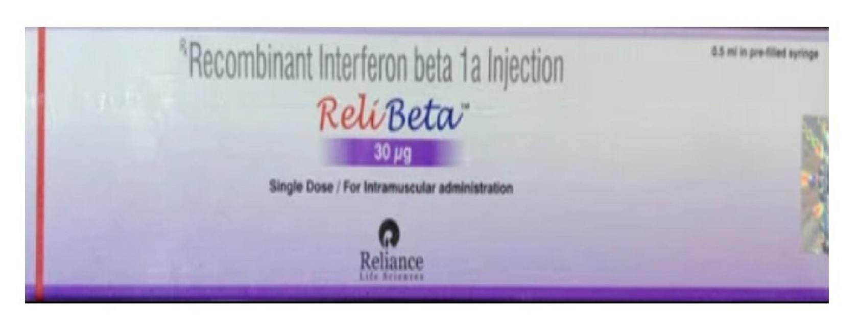 Relibeta 30mcg Injection contain the active substance Interferon beta-1a, which is classified as an immunomodulator. Interferons are natural proteins the body produces to fend off infections and diseases. The protein in Relibeta 30mcg injection is identical to the one naturally found in humans. This medication is utilized to treat relapsing forms of multiple sclerosis, an autoimmune condition impacting the central nervous system (brain and spinal cord).