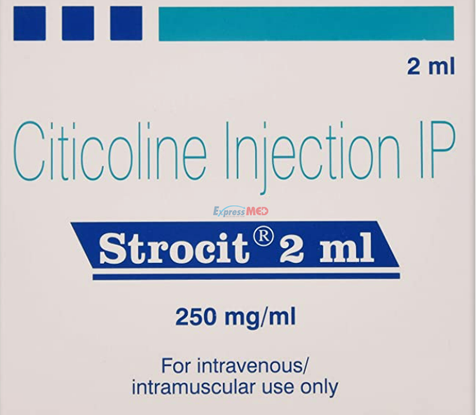 Strocit 250mg Injection (2ml) contains an active component of citicoline. It is used to treat disturbances of consciousness resulting from brain operation, head injuries, or stroke in adults only. It delays the loss of cognitive function (involves memory, thinking, attention, and problem-solving) in patients with Alzheimer’s. Talk to your physician if you have serious kidney disorders, depression, or bleeding conditions in the brain before taking Strocit 250mg Injection (2ml).