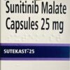 Sutent 12.5mg Capsule consists of the active ingredient Sunitinib. It is classified as a tyrosine kinase inhibitor, which means that it works by blocking certain enzymes called tyrosine kinases that are involved in the growth and spread of cancer cells. This medication is used to treat gastrointestinal stromal tumors (GIST), rare cancer that can start anywhere in the gastrointestinal tract. This medication is also used to treat advanced kidney cancer, and pancreatic cancer called pancreatic neuroendocrine tumors (PNET). Cancer is a disorder in which abnormal cells grow in an uncontrolled manner. It is not recommended for people under 18.
