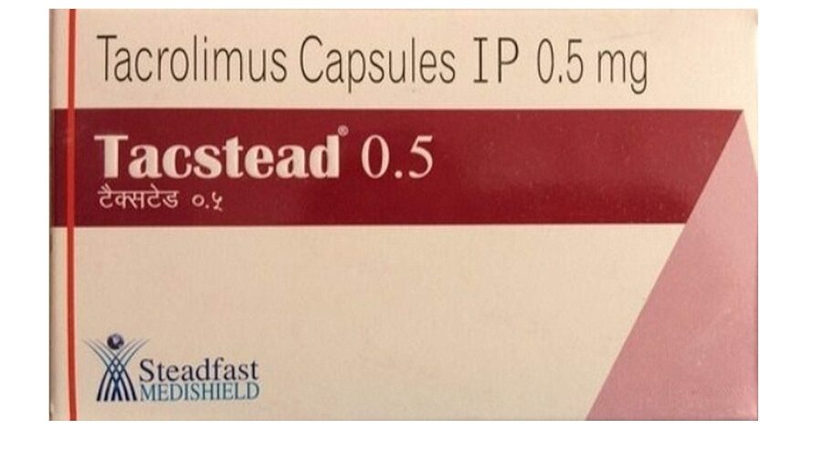 Tacstead 0.5mg Capsule provides immunosuppression by inhibiting T-lymphocyte activation and proliferation and T-helper-cell-dependent B-cell response. It works by attaching to a protein called FKBP-12 and forms a complex called tacrolimus-FKBP, which inhibits the action of calcineurin phosphatase. This, in turn, inhibits the formation of T cells and suppresses the immune response.Inform your healthcare provider about all the medicines that you take, including prescription medications, over-the-counter medications, vaccinations, nutritional and vitamin supplements, and herbal products. Certain medications may interact with the effects of Tacstead 0.5mg Capsule and reduce its effectiveness by causing undesirable side effects. Avoid grapefruit or grapefruit juice while taking this medicine.