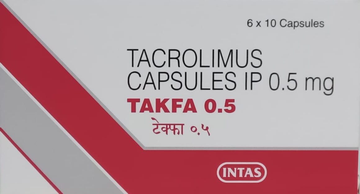 Takfa 0.5mg Capsule contains the active substance Tacrolimus. It is an immunosuppressant that belongs to the class of medications called calcineurin inhibitors. This capsule is used along with other medications to prevent organ transplant rejection in people receiving liver, kidney, heart, or other transplants. It is also indicated to control your body’s immune response, enabling it to accept the transplanted organ.