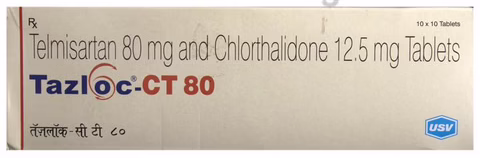 TAZloC-CT 80 Tablet contains two medicines, both of which help to control high blood pressure. Lowering blood pressure helps to reduce your risk of having a heart attack or a stroke in the future.