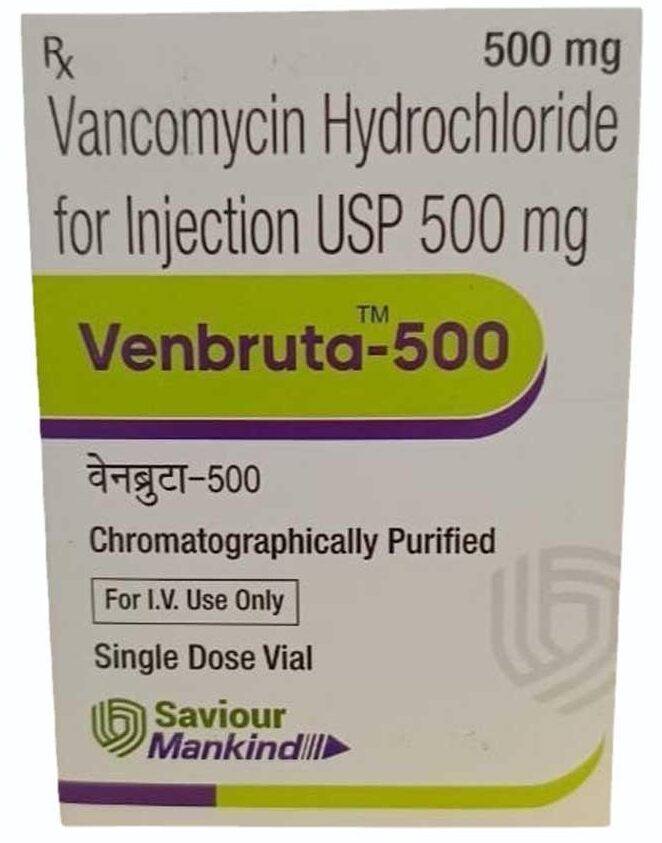 Venbruta 500mg Injection is also used for the prevention of infection in some high-risk patients undergoing surgical procedures. It works by stopping the growth of bacteria and is useful for treating adults as well as children. It is a narrow-spectrum antibiotic that only covers the gram-positive type of bacteria. This medicine is administered slowly by a drip (infusion) into a vein, under the supervision of a healthcare professional. A rapid infusion can lead to reactions such as low blood pressure, wheezing, shortness of breath, or itching. It may also be combined with other antibiotics to treat additional types of bacteria.